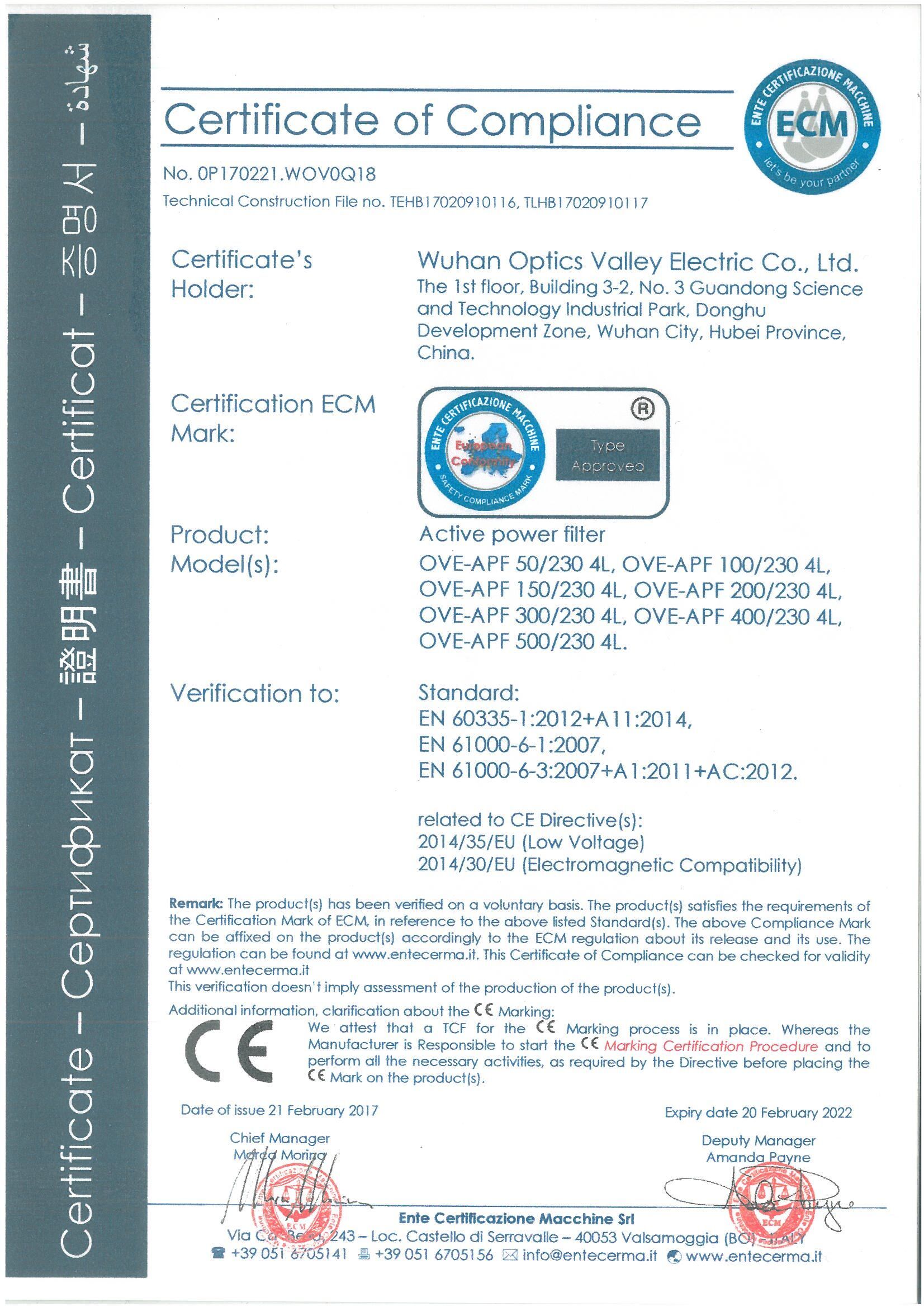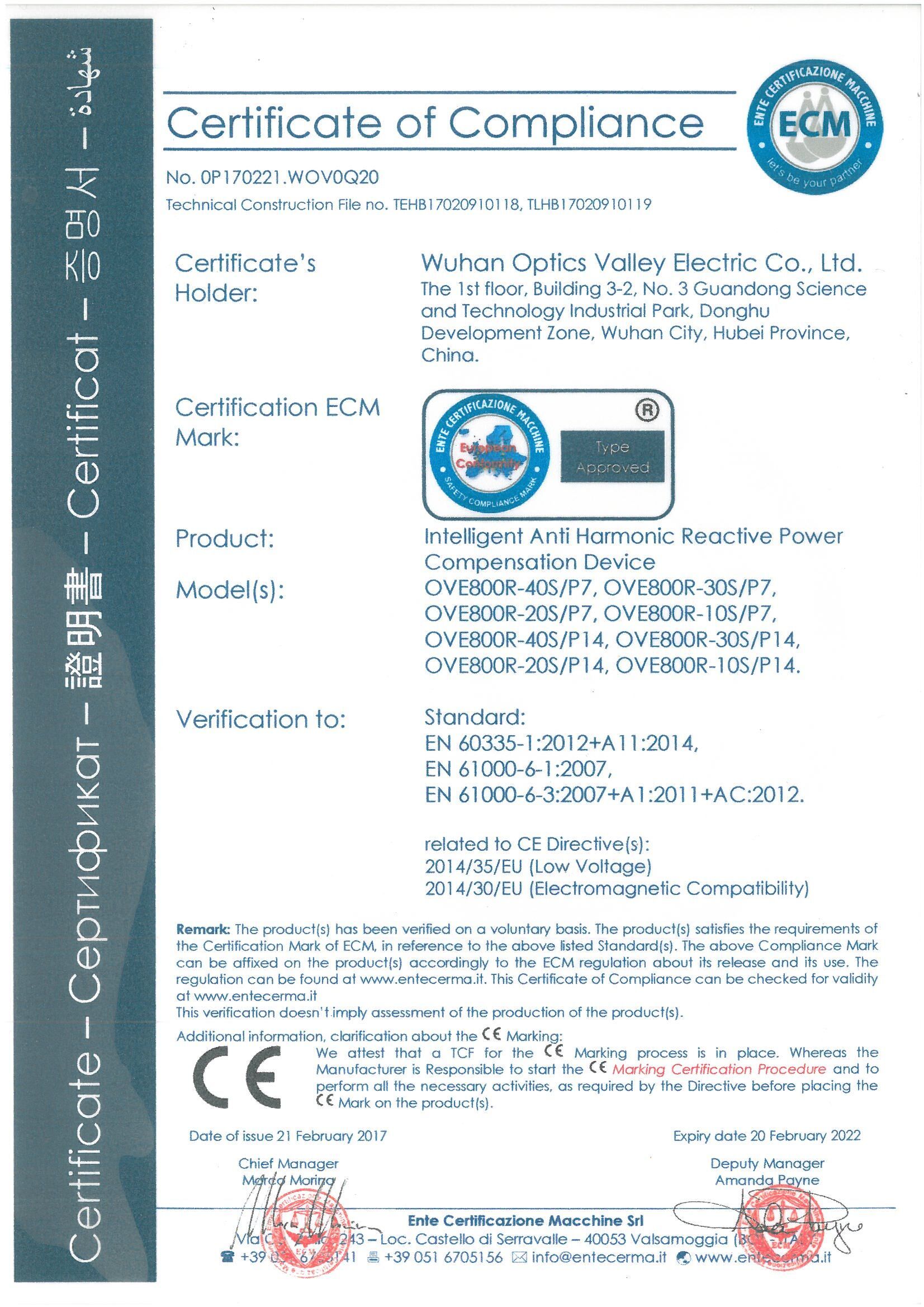 盛隆电气集团有源滤波器、智能电容器获得欧盟CE认证